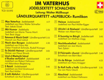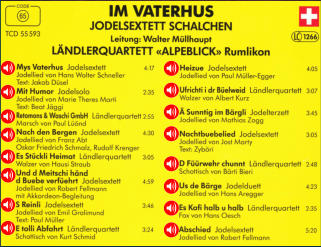 … Die CD «Im Vaterhus» ist eine Produktion des Jodelsextetts Schalchen. Sie wurde im Jahre 1991 veröffentlicht. Als Gastformation wirkte das Ländlerquartett Alpenblick mit. Die Aufnahmen derJodellieder und Musikkompositionen stehen als Impression zum Download bereit.
